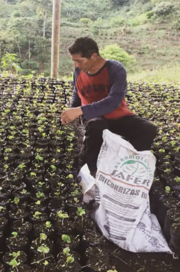 Trees also help mitigate soil erosion and regulate temperature in our farms. In addition to coffee, we cultivate plantains, tropical fruits, flowers, citrus trees, beans, and large native trees.