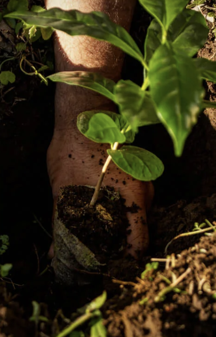 Disease-resistant coffee plants help us counter the effects of drought and heat. We recover the soil with crop rotation, cover crops, and composting.
